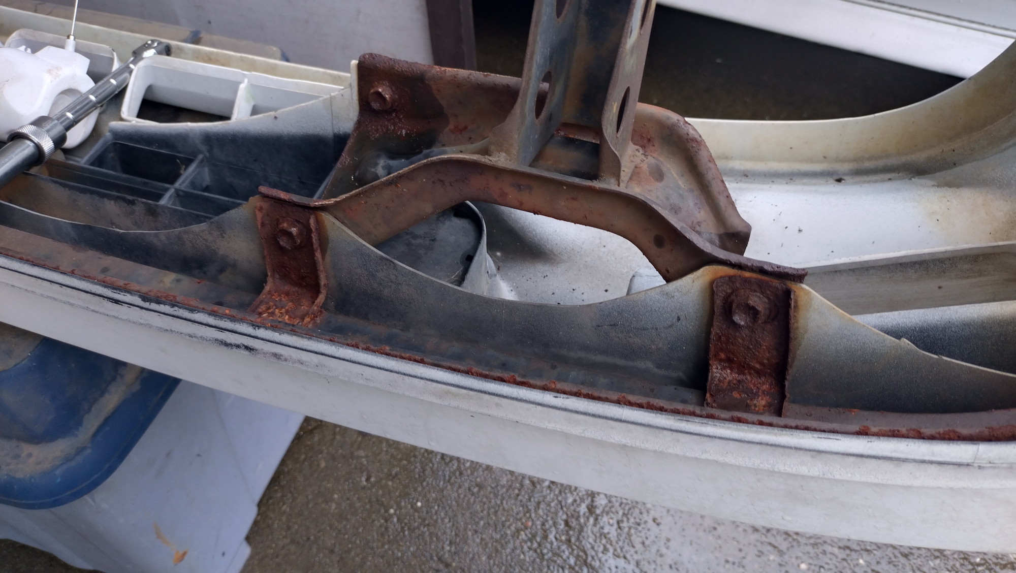 リテーナーのボルト取付けアングル4カ所もサビがひどくてどうしようもない。サビを落とせるだけ落として使用するしかないですね。